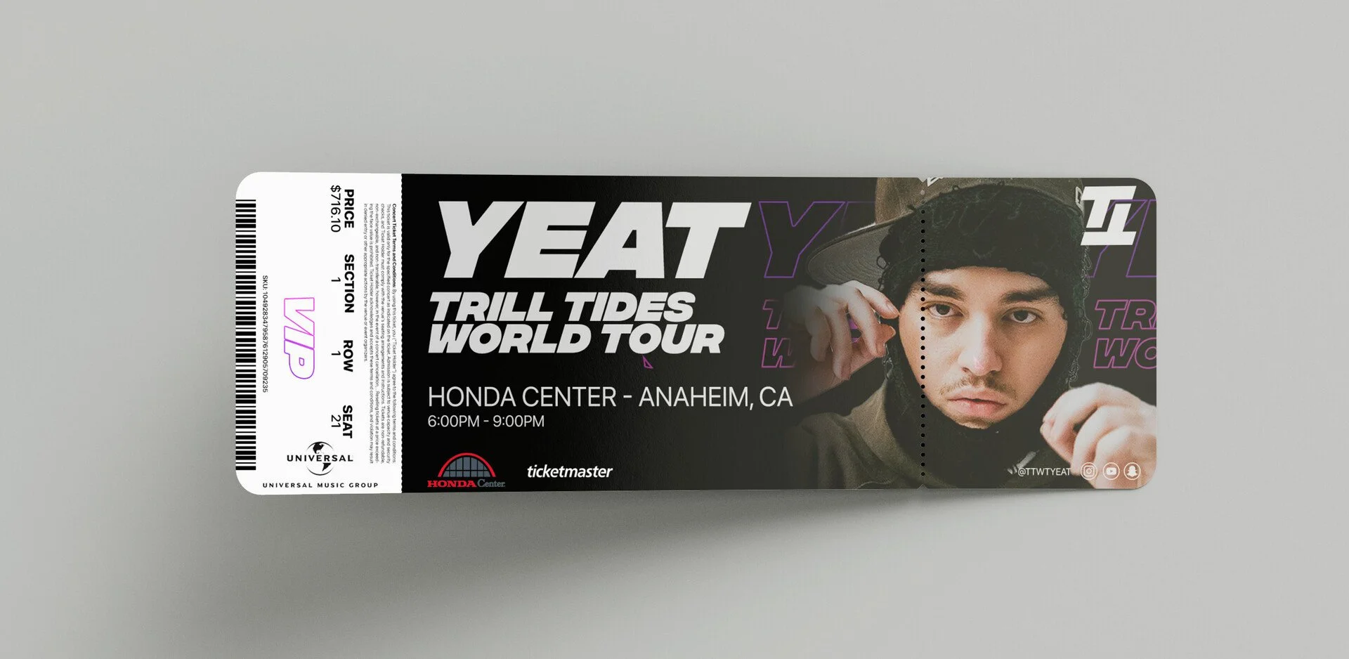Created a bold and immersive visual identity fan project for Yeat's Trill Tides Tour, blending futuristic aesthetics with gritty underground energy. The design package includes key art, animated social media assets, and stage visuals tailored to amplify the tour’s high-intensity atmosphere. Inspired by glitch art, industrial textures, and Yeat’s distinct sonic style, the visuals reinforced the artist's brand while resonating with his fanbase.
